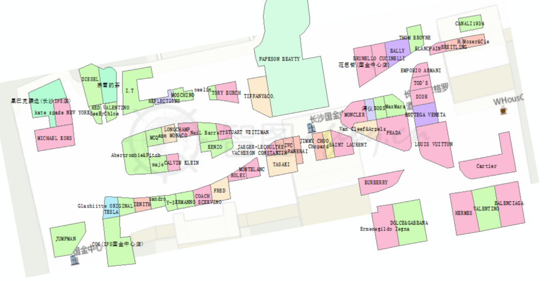 据智图GeoQ商业地产数据,长沙IFS国金中心1F主要聚集着珠宝首饰、鞋包、饮品、服饰等业态,其中LONGCHAMP、STUART WEITZMAN、TORY BURCH等奢侈品牌云集。