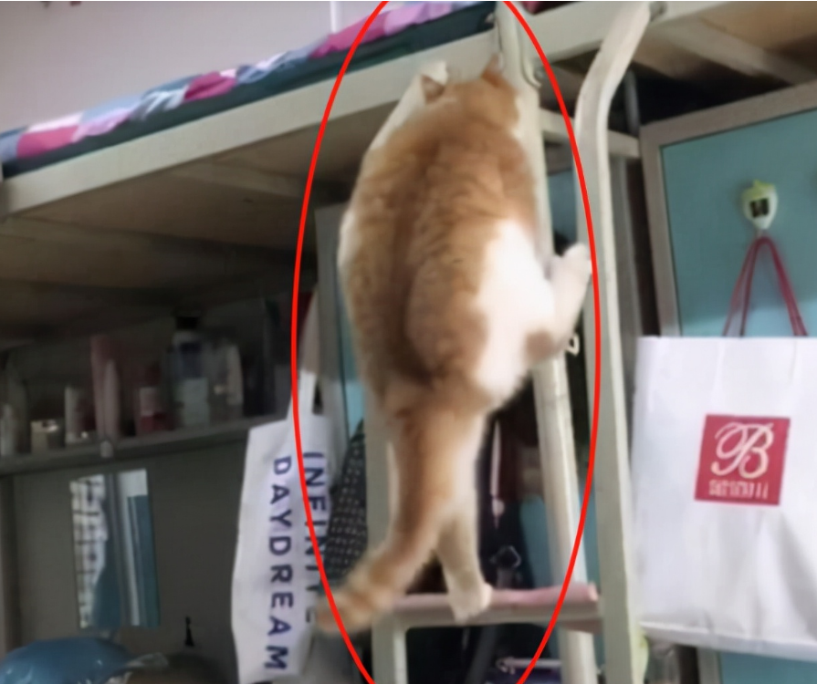 如下图所示,一大学生女生宿舍养的橘猫,看猫咪的体型,就知道主人一定花了很多心思,看着如此可爱胖胖乎乎的橘猫,宿舍阿姨也不忍心没收。