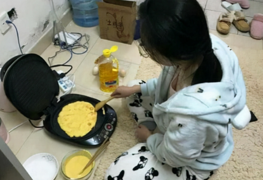 学校食堂饭菜不合胃口,总想吃点家乡特产,但是学校周边又买不到,女大学生开启自己动手丰衣足食的模式,买蒸锅、煎锅、煮锅在宿舍做饭,让规规矩矩的宿舍有了家的味道,有了烟火气息。