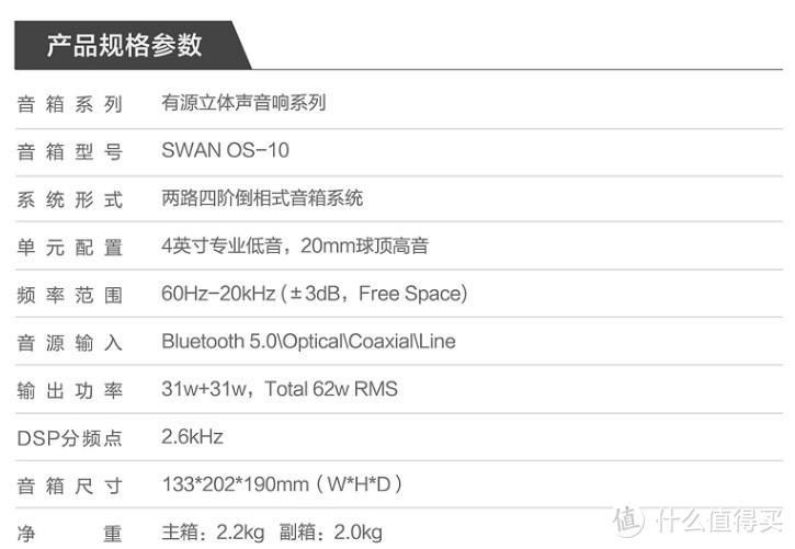 采用2.75英寸全音域单元,40W数字功率放大器,动力澎湃。支持光纤输入,方便外接其他音响设备。