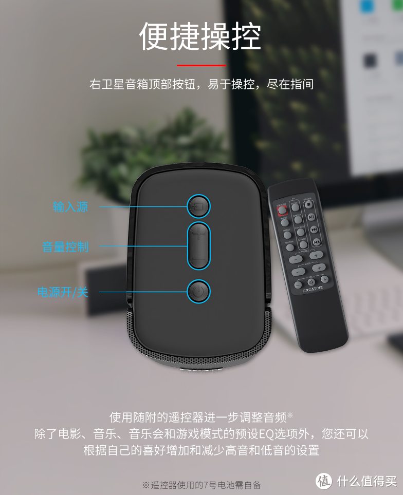 控制旋钮设计在音箱后面操控起来不方便,设计在侧面或者顶面更合理。遥控器是加分项,看个人需求。
