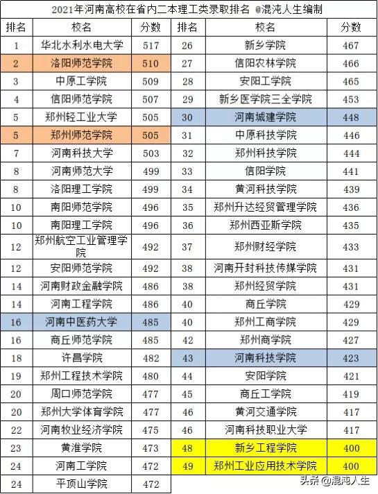 民办高校方面:民办高校录取最高的是新乡医学院三全学院,录取分为453分,录取最低的是新乡工程学院及郑州工业应用技术学院,录取分只有400分,正好是河南理科类二本录取控制线。2020年,民办高校的录取几乎都是过了本科线以上好几分甚至是十几分,而2021年,河南省内的高校只要过了本科线都可以录取,这相信对很多在本科线附近的学子来说有点后悔莫及啊!!