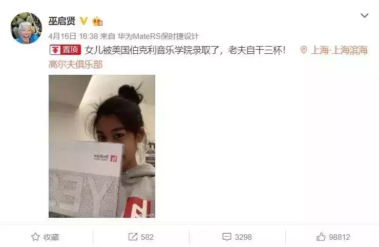 尽管之前她从柯蒂斯退学,但想必去年她成功申请到的伯克利音乐学院,应该也是同样水准的“世界一流大学”吧。