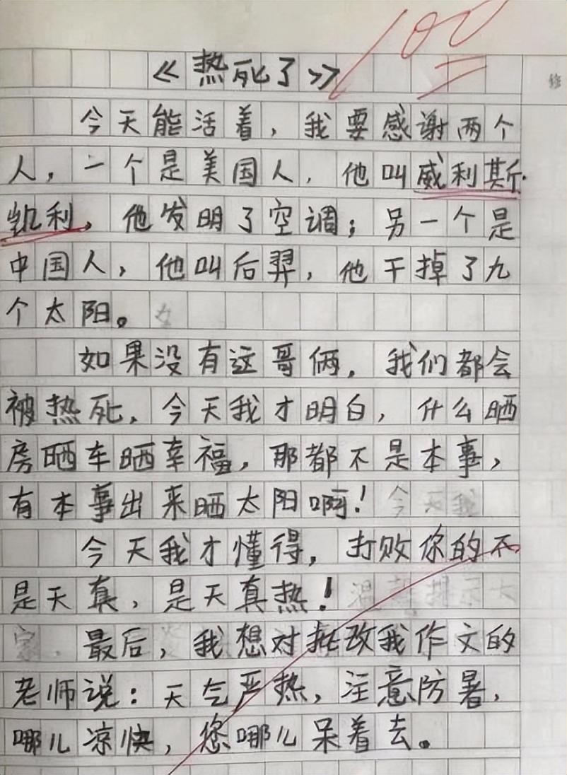 要不我拜你为师?小学生作文《热死了》走红,老师:我真的会谢!