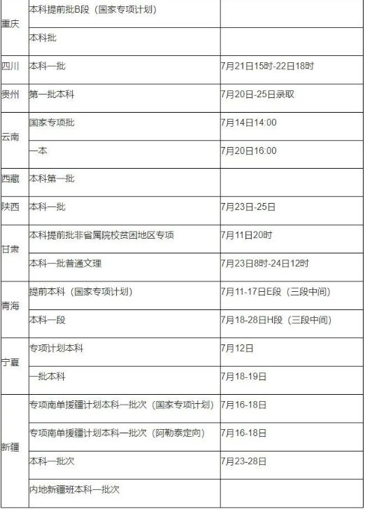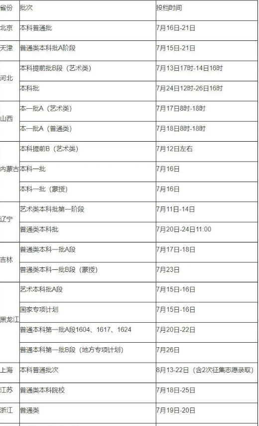 为方便考生了解录取时间,我们整理了已知各省各批次录取进程表,供考生和家长参考。