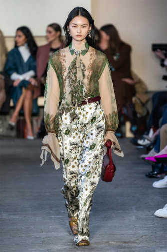 wuli涛姐此次的看秀look就选择了ETRO竹子暗纹红色提花西装,内搭印花衬衫,率性又风情万种,搭配的包袋为秋冬新款飞马包,灵动时髦,展现出ETRO“新传统主义”的摩登女性。