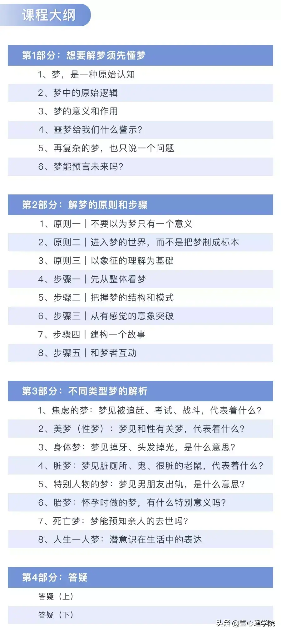 课程包含朱建军老师30年解梦精华,习得释梦技术,可以帮助自己和身边的人解梦,从而了解自己和他人。