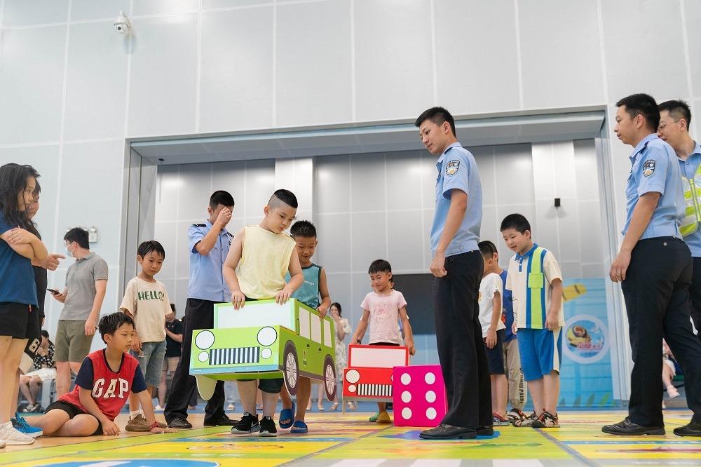 暑期里,中小学生户外活动增加,为增强学生交通安全意识,渝中区交巡警支队解放碑大队民警们,特意制作了汽车模型,模拟交通街景,在情景游戏中,通过设置互动问答,让孩子们遵守交通规则,学习停车、直行等交通指挥手势,以及识别常见交通标志。
