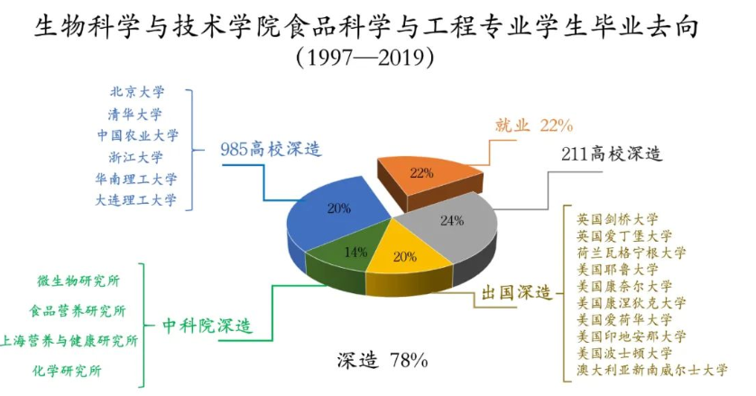 从以往数据来看,北林食品科学与工程专业的学生深造率高达78%,不少学生进入了清华大学、北京大学、美国剑桥大学、英国爱丁堡大学等国内外知名学府深造。如选择直接就业,该专业毕业生可在食品制造业、饮料制造业、农林副食品加工业、专用设备制造业、批发和零售业、餐饮业、科学研究与专业技术服务业、科技交流和推广服务业、教育、国家机构等行业的企业、机关、学校、科研单位等部门从事食品生产与技术管理、产品研发与品质控制、科学研究与工程设计、市场营销与物流管理、教育教学与咨询服务等工作。
