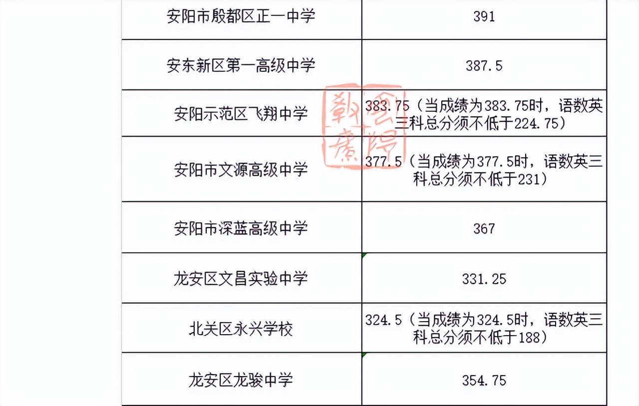 安阳市今年的普高建档线是317分,而录取的最低分是317.5分。这个最低分和最高分相差了200多分,差距不小。