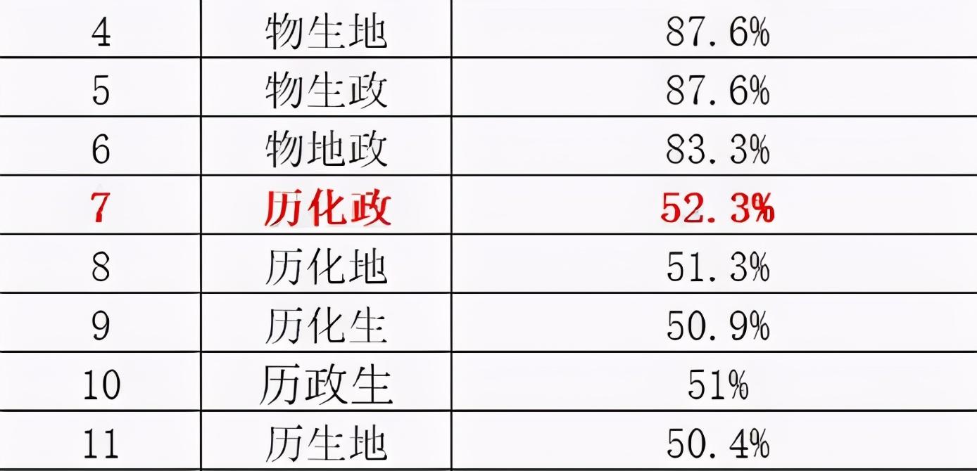 文科类的组合,历史化学政治选科组合在专业覆盖率中达到52.3%,其中最低的覆盖率是历史生物地理只有50.4%,可见学生们还是比较喜欢理科方向的专业。