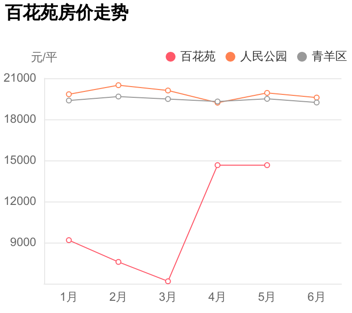 2020年6月为止,小区挂牌均价为8961元/平方米,比人民公园均价(2.09万/㎡)低约11939元,比青羊区均价(1.94万/㎡)低约10392元。小区均价不高,有明显的价格优势,处于区域价格洼地。