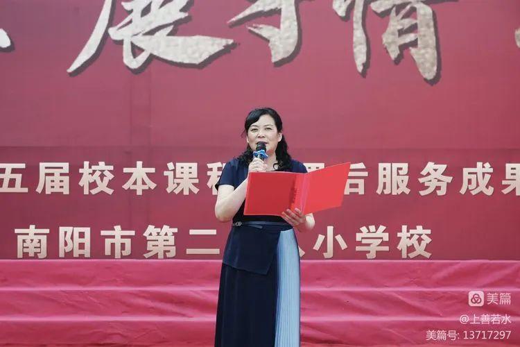 8:20分,以“悦课程,展才情,乐成长”为主题的“六一”汇演正式开始。首先校长勇梅致祝贺词,她真诚地希望同学们能在活动中激情昂扬,充分展示自己的才华,不断跃上新的台阶。接着宛城区教体局教学研究室主任段天才代表到场的所有领导,祝同学们节日快乐,祝本次六一汇演圆满成功。