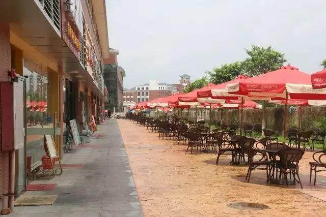 学校还有条商业街,一楼是全是商铺,有潮汕美食店、奶茶店、甜品店、麻辣烫、冒菜、快餐、西式快餐店等等,还可以外卖配送哦~