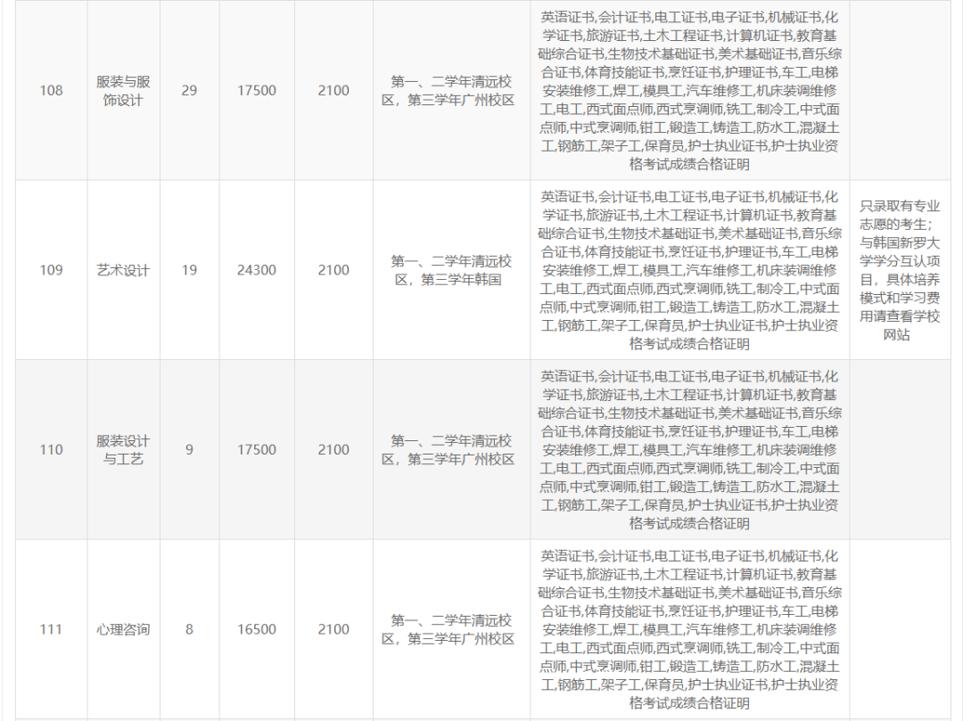 (学费、宿舍费等信息参考自《广东省2020普通高校春季高考统一招生目录》,具体数据以学校官方为准)