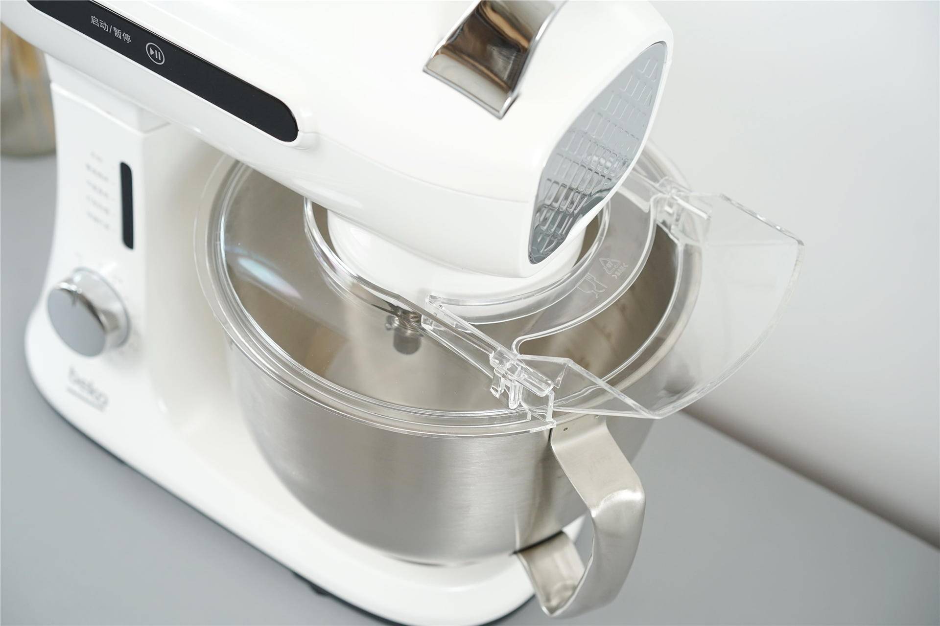 Beko倍科K6采用了800W大扭力直流电机,相比大多数厨师机采用的交流电机,具有轻音、省电、发热小、可持续工作时间长等优点。传动方面则采用了效率更高的涡轮涡杆结构,相比皮带传动,具有运行稳固不晃、不松弛抗老化及转动摩擦阻力小等特点。大扭力直流电机及更加直接的齿轮传动,基本也是目前高端厨师机的标准之一。