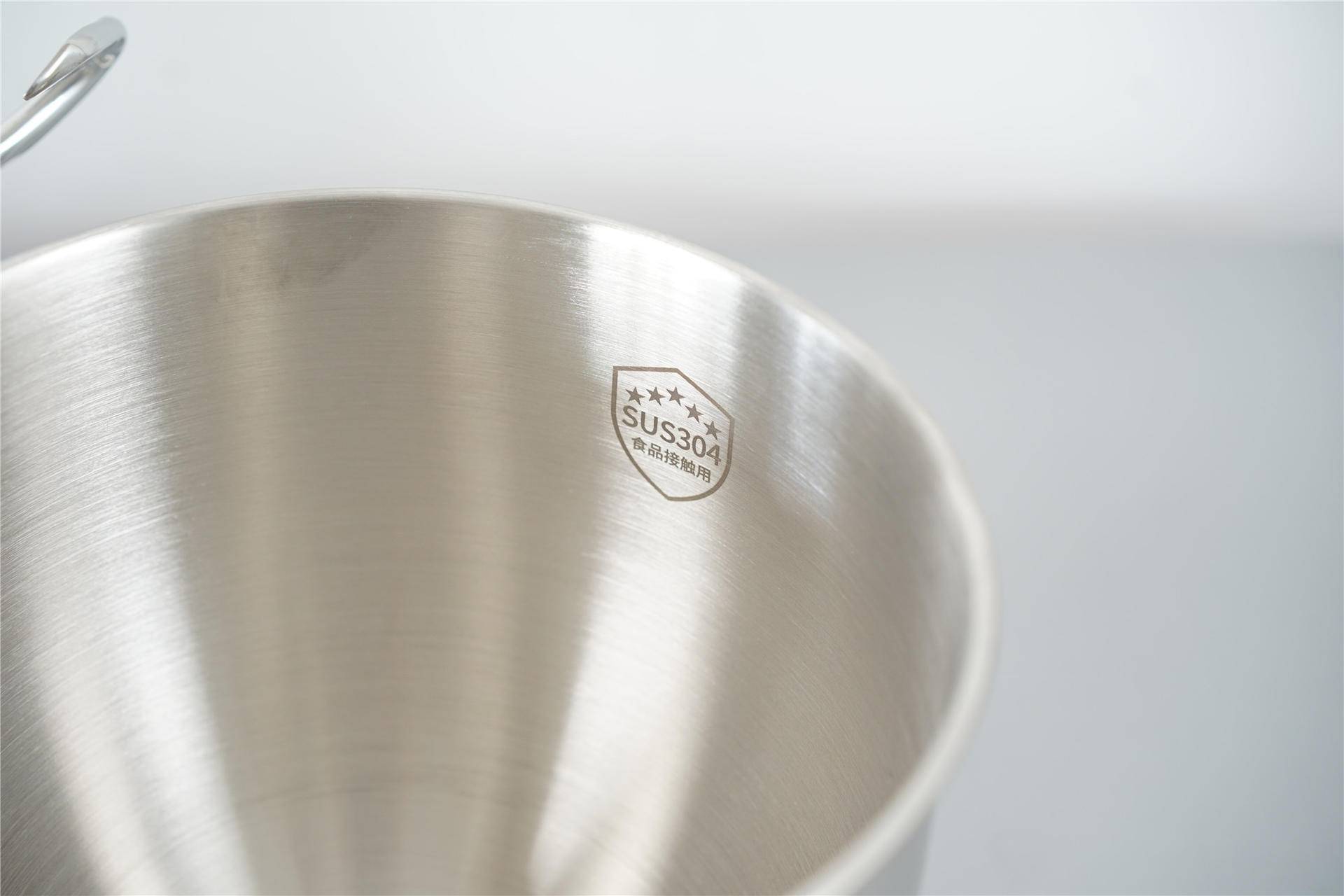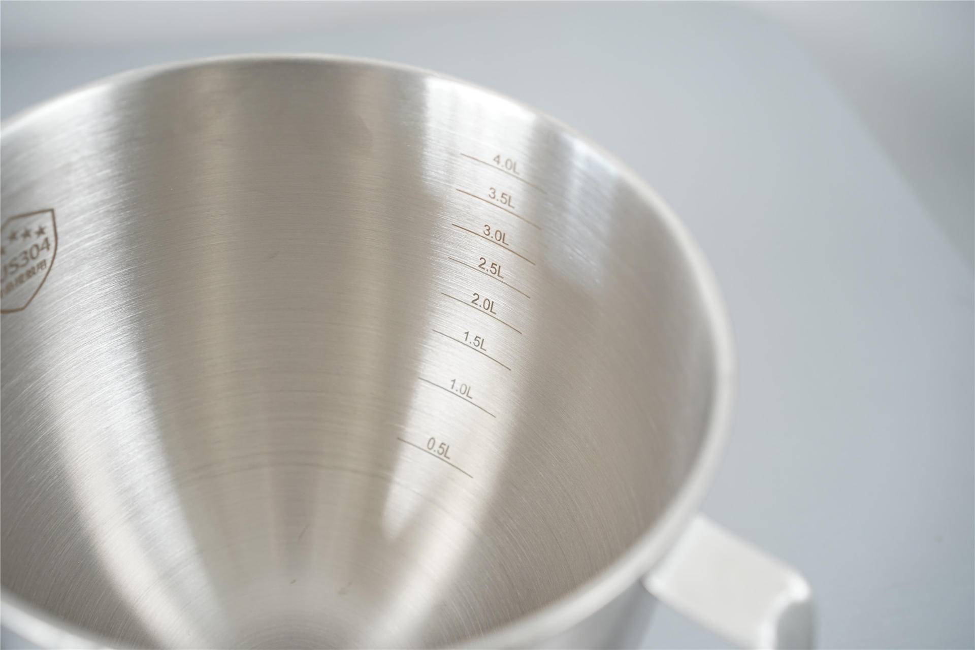 看看其它附件的相关情况,五星级SUS304不锈钢材质的搅拌锅,用料非常厚实,里里外外都采用了拉丝处理,质感非常不错。