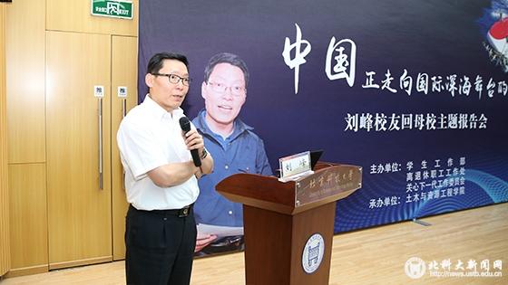 2012年6月,"蛟龙号"在世界最深海沟——马里亚纳海沟创造了、中国载人深潜纪录,也是世界同类作业型潜水器最大下潜深度纪录。在这项伟大的科技创举中,北京科技大学矿机专业79级校友刘峰,连续六年出任蛟龙号海试现场总指挥,率队下潜7062米,打破了世界纪录,为我国载人深潜技术由跟跑、并跑向领跑的重大跨越保驾护航。