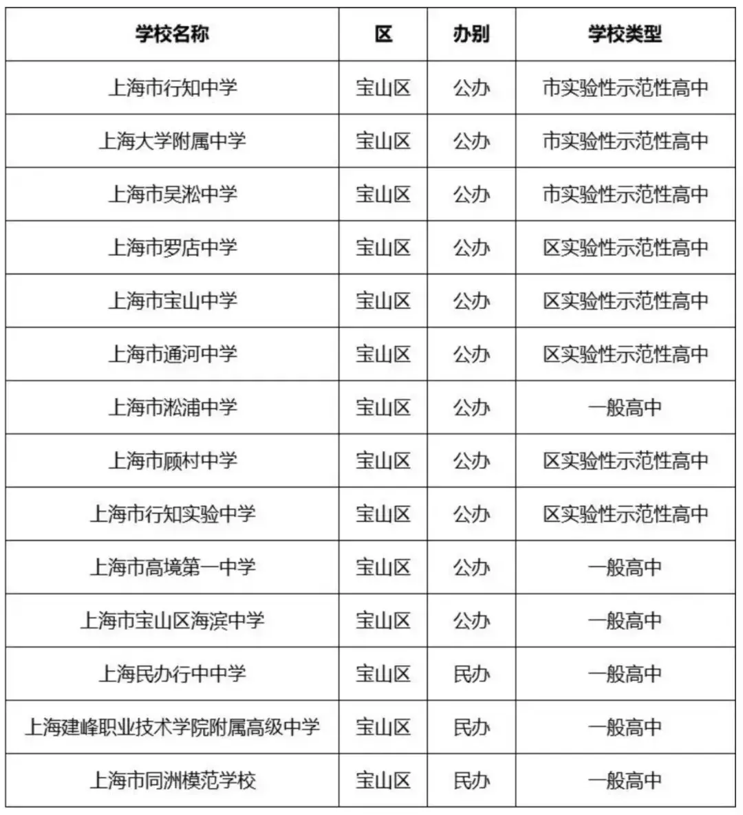 优质公办:宝山实验、求真中学、淞谊中学、吴淞实验、虎林中学