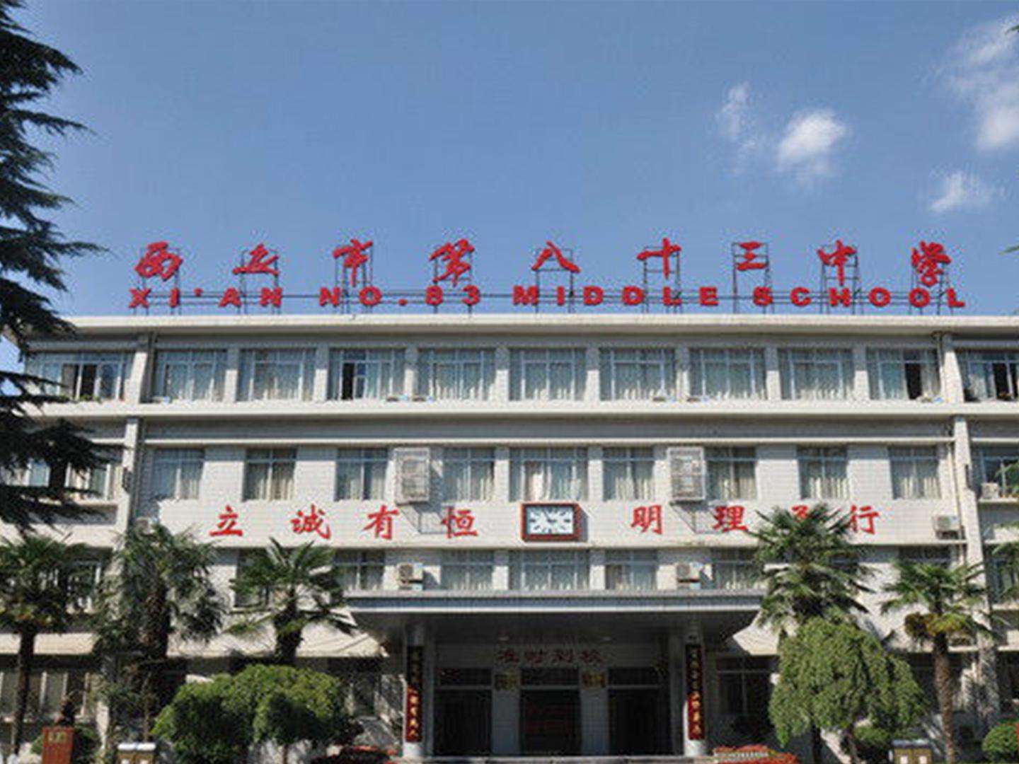 西安市第八十三中学的文化历史可以追溯至1896年在上海建立的南洋公学中院。1982年,被确定为陕西省首批办好的十所重点中学之一。2009年,被评为陕西省首批普通高中示范学校。截至2012年9月,学校占地28855平方米,建筑面积30118平方米;拥有编制教师126人,其中任课教师112人,特级教师4人;在校学生1600多名,32个教学班。
