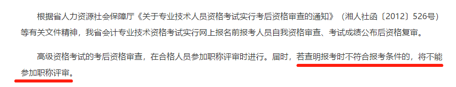 根据湖南地区发布的文件,我们看到:若查明报考时不符合报考条件的,将不能参加职称评审。