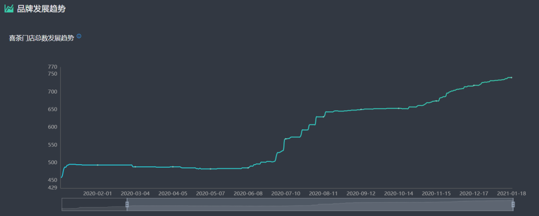 去年1月1日,喜茶在全国仅有458家门店,进入7月后喜茶门店总数一路攀升,可见它的发展势头不错。
