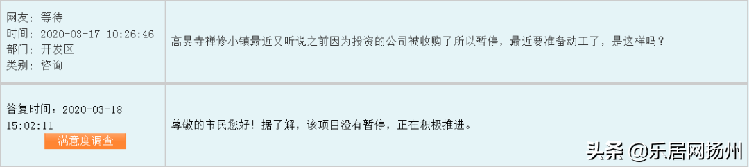 很多网友关心的运河禅修小镇,根据官方回复:该项目没有暂停,正在积极推进!