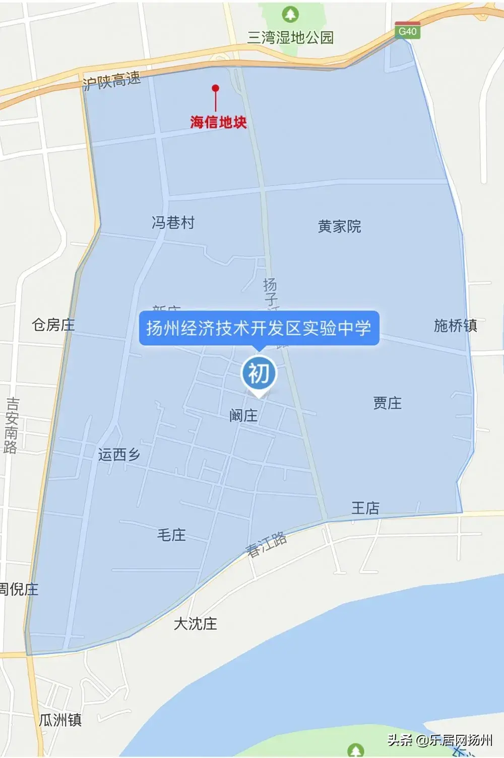 通过搜索寄语市长网站,我发现,与其同处扬州经济技术开发区实验中学学区的中海运河丹堤、金地艺境等小区,虽与扬子津小学一河之隔,但却需到几公里外的施桥小学入学。