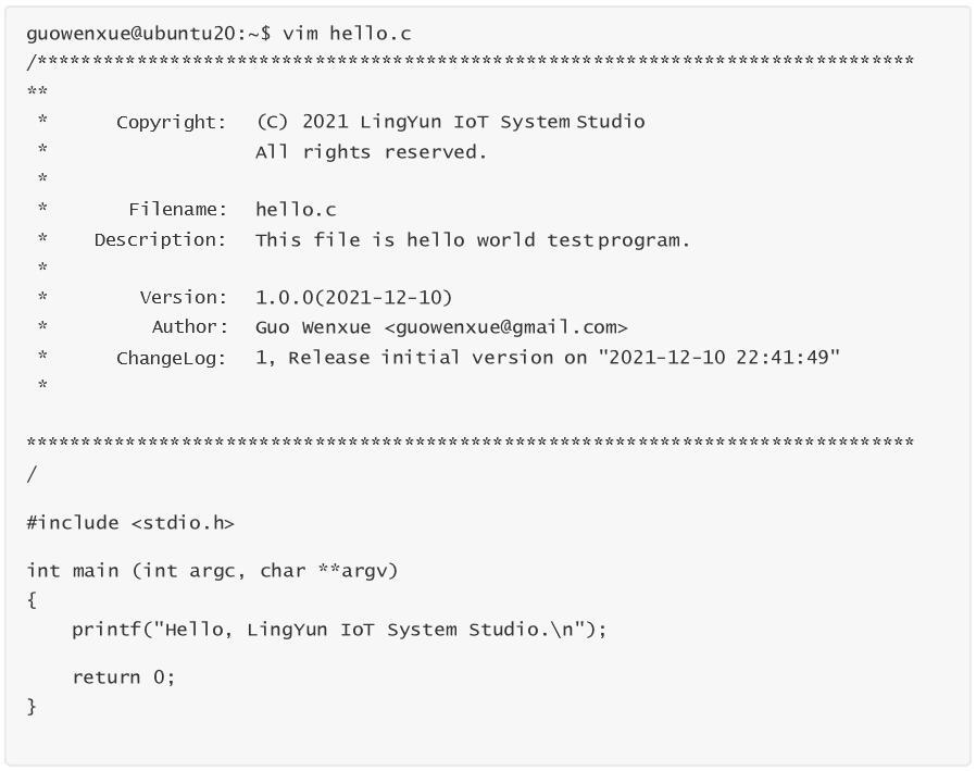 首先,我们使用 vim 编辑器编写 hello.c 测试程序: