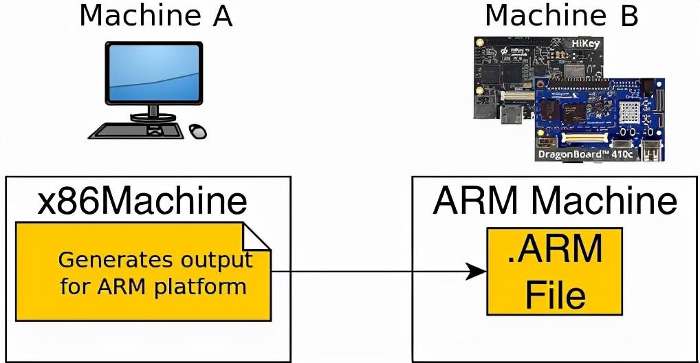 而在一种平台上编译出能在另外一种体系结构完全不同处理器上运行程序的编译过程,叫做 交叉编译(Cross Compile)。比如在PC平台(X86 CPU)上编译出能运行在以ARM为内核的CPU平台上的程序,编译得到的程序在X86 CPU平台上是不能运行的,必须放到ARM CPU平台上才能运行,虽然两个平台用的都是Linux系统。