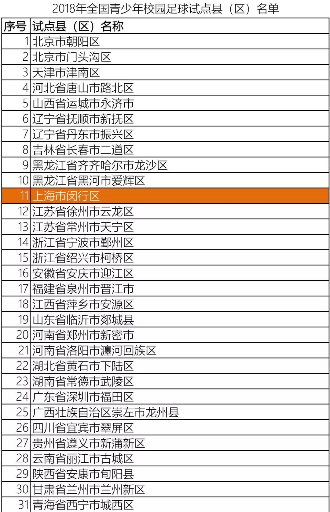教育部新近公布了2018年全国青少年校园足球特色学校、试点县(区)和“满天星”训练营遴选结果名单。