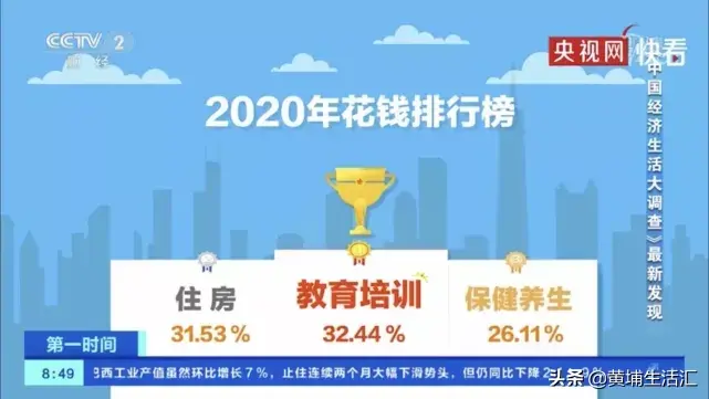 近日,央视网联合《中国经济生活大调查》发布了2020年中国人花钱排行榜,占据榜单前三的依次是:教育培训、住房、保健养生。其中,广州、海口、拉萨、合肥、乌鲁木齐这五个城市的居民对教育培训消费意愿最强;从不同收入人群来看,中等收入与偏低收入群体更愿意把家庭收入花费在教育上。