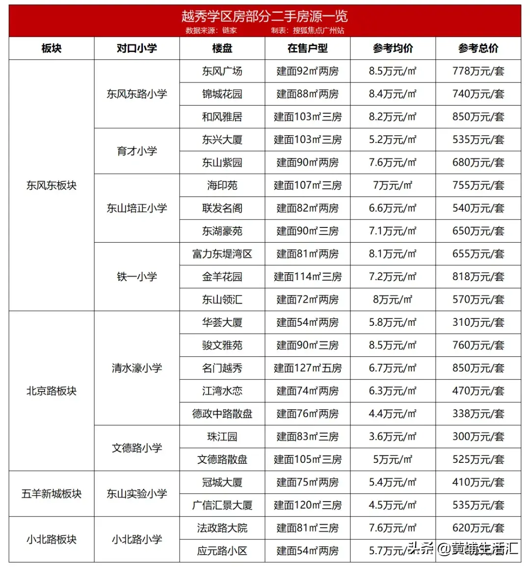 黄埔二手学区房价格处于全区的较低位(数据源于搜狐广州)