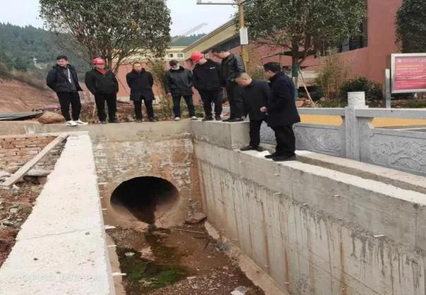 督导检查中, 黄强一行对学校总体集水总面积, 设计和施工的排洪设施是否满足50年一遇的防洪要求, 防汛应急预案编制和应急演练准备等情况进行了详细了解, 并对学校的防汛排水沟、管设施以及护坡进行了现场查看。