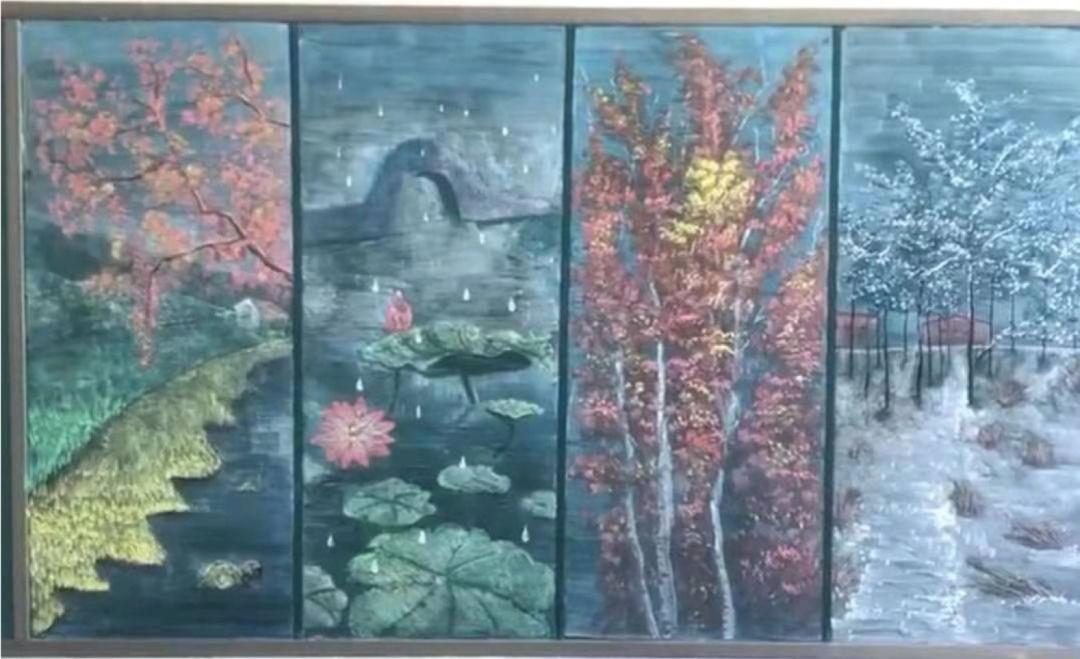 通过这几幅粉笔画,我发现孩子们很喜欢这样的粉笔画教学,上课特别积极,课堂气氛也特别好,学习特别高效。所以我想把简单的粉笔画教学,展示给更多的美术老师,以便于大家在日常教学中运用,于是我在抖音上画了一幅简单易学的《春夏秋冬》。
