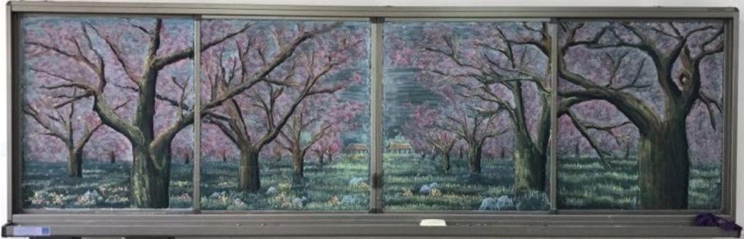 如同其他美术老师一样,赵文瑞也很会在黑板上绘画。他会用最简单的粉笔画教孩子们画小动物,而用同样的粉笔,他也可以在教室的黑板上涂抹出像油画一样的红墙绿影、十里桃园。一个偶然的机会,这位“一米八八的美术教师”在抖音上被人熟知,赵文瑞通过20余幅作品,吸引了80万网友的关注,点赞量累计1000余万。