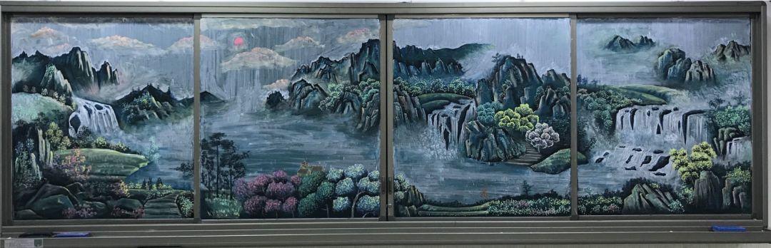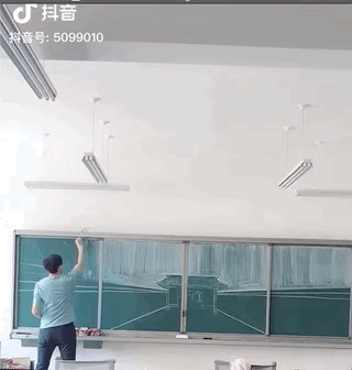 当我把这幅作品画完以后,学生们特别喜欢,还有学校里边其他办公室的老师也专门过来看:“这可以用粉笔画出来,实在太牛了,给其他办公室也画一下吧。” 还有的老师说,心情不好的时候,看一下我的粉笔画,心情就会舒畅很多。