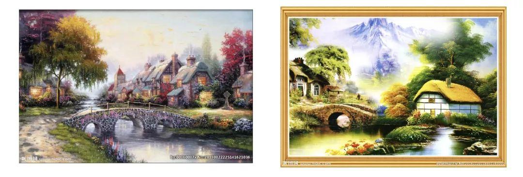和国画一样,油画在普通教学中也很不方便,所以我又绘制了另一幅油画风格的粉笔画《村庄》。油画和国画相比更为细腻、颜色也要更为丰富。国画重在神似,而油画重在形式。这幅油画风格的村庄是我将两幅不一样的油画拼成了一幅作品。