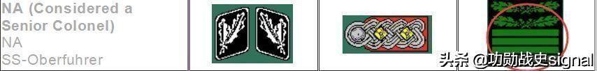 注:党卫军的SS-Oberfuhrer在1942年的军衔体系中有所变化,后面的迷彩军衔为臆造品历史不存在的。