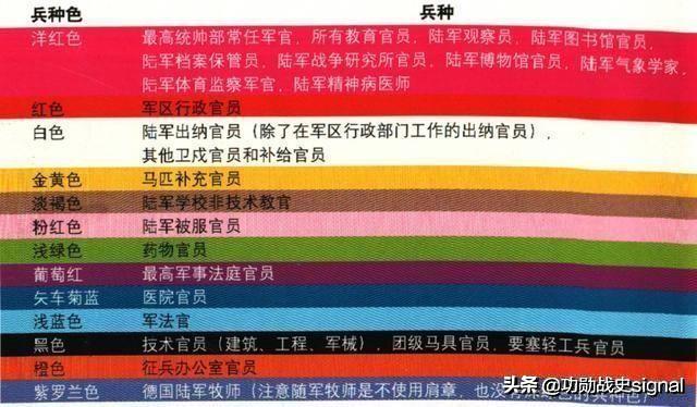 行政文职军衔德国陆军行政官员的兵种色为深绿色,但是为了同其他的陆军军官区别开来,每个行政部门都设有第二兵种色。第二兵种色和深绿色一起出现在肩章上每个第二兵种色都有与之对应的部门来进行区分和管理。(色盲的同学在德军里很是头疼啊)