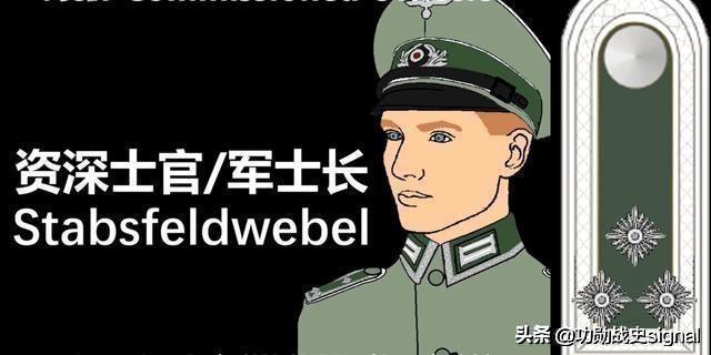 在服役满12年后的士官,就可以晋升为肩章上带有三颗星的士官最高的军衔:资深军士长或者士官长(Stabsfeldwebel) 此军衔为1938年设立,然而1933到1945也就是12年(这分明就是细化等级到了极致了),所以授予大部分魏玛时期的老油条。资深军士长或者士官长(Stabsfeldwebel)