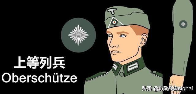 如果列兵继续在6个月或者1年内没有晋升到豁免兵那么德军还进行“区别对待”自动晋升为佩戴在袖臂上带有圆形徽布刺绣有四角星的独特标志上等列兵(Oberschütze)以示表彰!这种士兵就等于和军衔晋升说拜拜了的结果了(垫底吊车尾)上等列兵(Oberschütze)