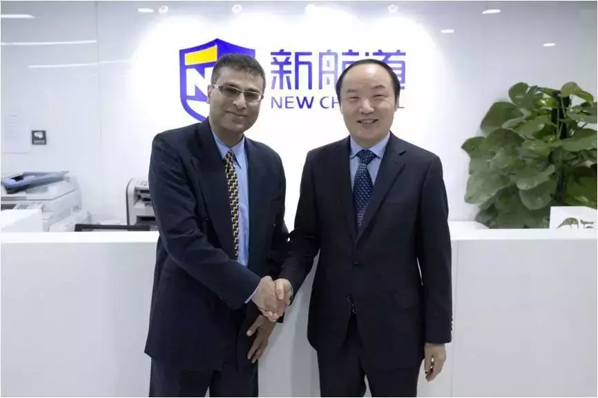 ETS托福项目全球执行总监Srikant Gopal与新航道国际教育集团董事长兼CEO胡敏合影
