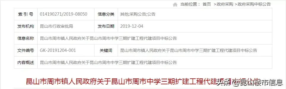 周市中学三期扩建项目拟实施实施昆山市周市中学三期扩建工程,占地面积约19.4亩,总建筑面积约23955平方米,主要建设教学楼、食堂等。三期扩建后增加6轨18班,总办学规模为18轨54班,缓解周市教育资源不足矛盾。