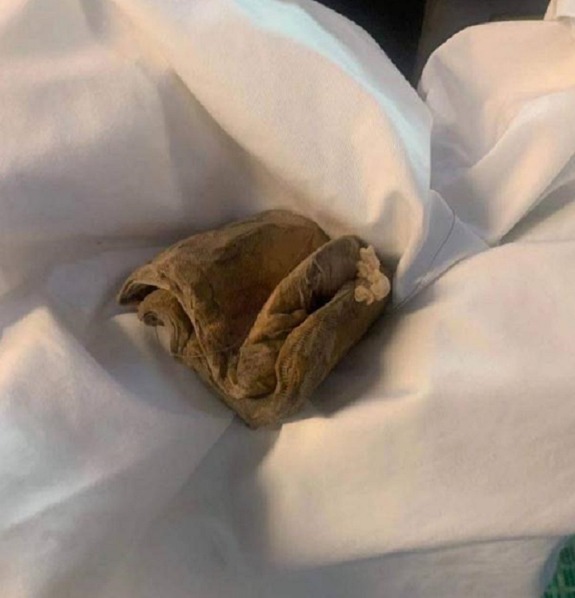 又过了大约3个小时后,张某将吸满黄金溶液的丝袜取了出来,躲在角落里悄悄取出丝袜准备放进衣服内侧藏好时,观察已久的民警突然出现在他面前,来了个人赃并获。