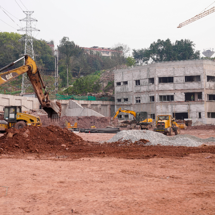 天生向阳小学(二期)所有教学楼、运动场主体结构均已完成,几辆挖掘机在运动场忙着平整地面,仅剩7号楼还在进行外墙施工和室内装修工作,6号楼的膳食中心已装修完毕,即将安装桌椅和餐厨设施。(3月份的进度)