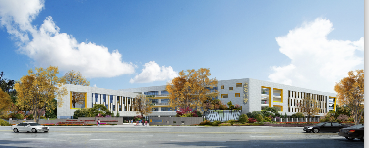 九曲河学校总投资4.6亿元,总用地面积41878.17㎡,总建筑面积57655.62㎡,包含行政楼、教学楼、多功能厅、风雨操场、室外操场、食堂、图书馆、地下车库和设备用房等。