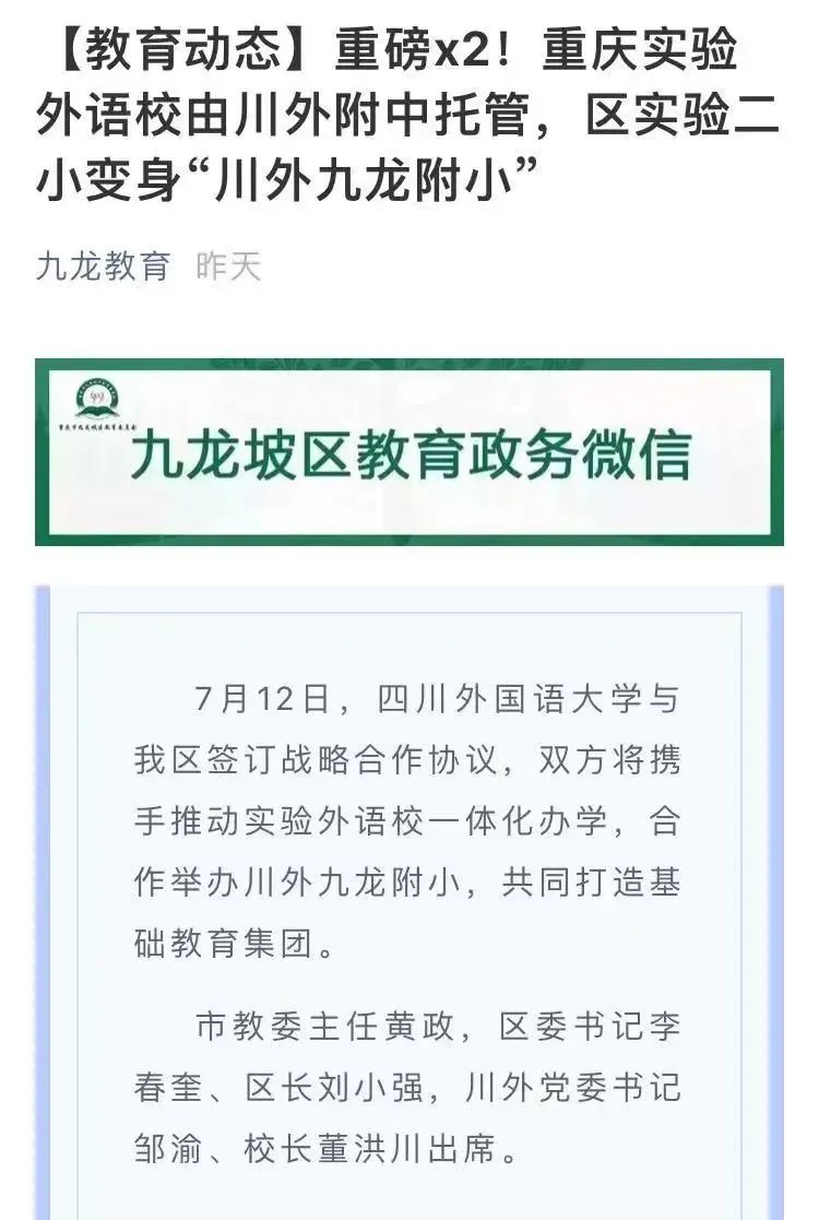 2021年7月,九龙坡区实验二小变身“川外九龙附小”。