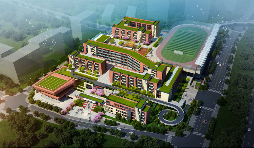 通江新城B02-42-3地块中学,占地面积约95.5亩,总建筑面积9.99万平方米,招生规模60个班。
