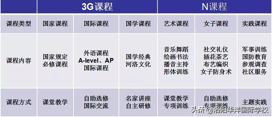 华洋女子高中以先进的办学理念结合女子个性化教育特点,精心设置了独具特色的“3G+N”课程体系。